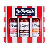 - Yo Mama’s Foods Low Carb Condiments Gift Set | Includes (1) Buffalo Sauce, (1) Classic Ketchup, (1) BBQ Sauce | Keto-Paleo | All-Natural | Gluten-Free and Made from Fresh Ingredients