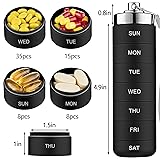Premium Sturdy Metal Materials - The metal pill organizer 1 time a day uses medical grade aluminum alloy tube and the top cover is made of stainless steel, which is light but durable. The sturdy material makes it no longer easy to crack like other plastic pill boxes, which can better protect your pills. Airtight & Waterproof - Each large compartment has a waterproof rubber seal. It has undergone rigorous testing to ensure that the vitamin organizer is airtight, waterproof and moisture-proof. In your daily use, protect your pills from moisture in the air, or accidentally dropped into water and soaked. Laser Engraved Letters - The date on the metal case is engraved using a laser. With laser engraving, the letters will never be erased. You don't need to worry about the letters of the pill dispenser being worn out and not being able to see clearly. And after matching the unique color of the shell, you will feel that the medication organizer looks more elegant. Upgrade Large Capacity - Lightweight and compact metal pill case with extra large compartments, each compartment can hold 15 capsules or 8 fish oils. Our expandable pill organizer is a great choice when you need to carry more pills on the go and don't have a suitable portable pill organizer to use. It can also meet your daily use for 7 days, 1 time a day. Portable & Not Pop-up - As a stackable pill holder, you can choose any number of days to recombine and carry it according to your needs.Small and cute size to fit in your pocket, handbag, backpack. Each compartment adopts a rotary locking method, so that the pill supplement organizer won't pop up accidentally or easily opened by children and pets. Make a good storage space for your pills.
