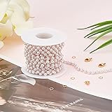 Beebeecraft 16.4 Feet Pearl Beading Chain with 18K Gold Plated Cable Chain with Lobster Clasps and Jump Rings for Bracelet Necklace Jewelry Making
