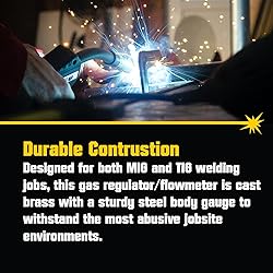 Professional Use - The PrimeWeld Gas Regulator/Flowmeter helps you measure and control CO2, argon, and helium levels for optimum MIG and TIG welding. Accurate Adjustments - Since the optimal gas pressure for MIG and TIG welding can vary depending on factors like torch size, consumable sizes, and the type of metal being welded, this gauge should be in every welder’s workspace. Calibrated for Multiple Gasses - The PrimeWeld flowmeter is calibrated for CO2, argon, and helium. Each gas has its own easy-to-read markings on the flow tube. Making this a must have for any welding application. Durable Construction - Designed for both MIG and TIG welding jobs, this gas regulator/flowmeter is cast brass with a sturdy steel body gauge to withstand the most abusive jobsite environments. PrimeWeld's Promise - If for any reason you're not satisfied with your gas regulator/flowmeter, simply reach out to Customer Support and we'll make things right for you! All employees, parts and customer service Is located in the USA!