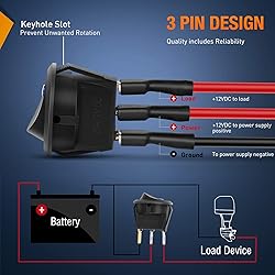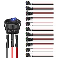 Perfect Design: Designed to connect and disconnect a DC 12V 20A electrical circuit at will, SPST: ON-OFF control; 2 pole design (On/Off), 3rd poles with LED to be connected to earth. Fluorescent lamps will be lighted up when the switch is turned on Safety Protection: This truck rocker switch control uses copper-plated silver contacts, has good electrical conductivity, and uses high-quality materials and flame-retardant casing for high safety Widely Application : Suitable for cars, ATVs, UTVs, Wranglers, RVs, off road vehicles, trucks, boats, marines, electronics modifications, etc. Can also use these on water dispenser, running machine, electromobile and other household appliances modification Easy Installation: Round on-off switch is easy to install, which is just direct setup, and no additional work required, our switch comes with a keyhole slot to prevent unwanted rotation Package Includes: 4x Blue Round Toggle LED Switches;4x Green Round Toggle LED Switches;4x Red Round Toggle LED Switches;4x Yellow Round Toggle LED Switches;24 x Red wires; 12x Black wire.
