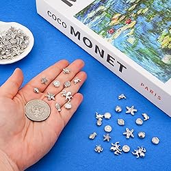 Abundant Variety: Explore the wonders of the sea with this complete set of 100 delicately crafted charm beads, featuring 10 enchanting designs including starfish, turtles, dolphins, shells, fish, octopuses, and more (sizes range from 8–16mm). Perfect for creating your own ocean or beach-themed jewelry and crafts. Premium Quality: Each charming sea creature bead is made from durable alloy with a solid metal feel, featuring intricate details that won’t easy to fade. Resistant to bending and breaking, these beads are built to last through years of creative use. Versatile Uses: Let your imagination sail. Ideal for beading and designing jewelry such as bracelets, necklaces, earrings, rings, and chokers. Also great for decorating keychains, phone straps, brooches, bags, clothing, and home accessories. Artistic Design: Inspired by artisan craftsmanship, each bead is shaped into a cute ocean figure with finely carved surface details and finished with a shimmering antique silver plating. A perfect blend of classic elegance and playful charm that will delight you in every handmade piece. Meaningful Gifting: Enjoy a relaxing crafting experience or create heartfelt, custom gifts for loved ones on special occasions—be it Christmas, Valentine’s Day, Mother’s Day, birthdays, graduations, or seasonal celebrations. A thoughtful and personal touch for any moment worth remembering.