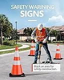 FLEXIBLE PVC: Every construction cone is made from sturdy flexible PVC. That makes the safety cones solid, stable, and weighted, able to withstand heavy loads EASY TO STORE: Each cone can be continuously overlapped which only takes small space in the car or garage. That makes storage very easy, so you can carry the traffic cones conveniently 2 HIGHLY VISIBLE REFLECTIVE COLLARS: These orange safety cones with bright colors and 2 high reflective strips make the traffic cones highly visible during day or night BLACK WEIGHTED BASE: The safety cones stand at 28 inches tall with a heavy black rubber base, making people and cars cannot knock down the traffic cones easily. Stable in windy, high temperature, sun burning, bad weather conditions MULTIPLE USAGE: These heavy duty cones can be used in parking spaces or personal areas, like equine courses, sideways, or any public areas to prevent the car for people play in the driveway or playground