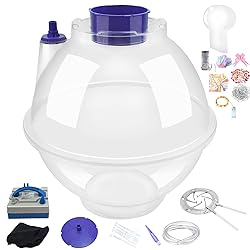 NOTE: The balloon expander in a small box and paste underside with the white box; High-quality material: The balloon filling tool is made of thickened PP material, which is non-toxic, odorless, durable and durable, and has a long service life. Balloon filling machine size: 47*47*50cm, filling port diameter 10.3cm, suction size: 7cm, suitable for ball type: 24"/36" wide mouth wave ball and latex balloon. Silicone sealing design: soft silicone rings are placed in the two hemispheres of the balloon filling machine, which is not easy to run out of air. After the balloon is expanded, the closed sphere is close to a vacuum state, which can keep the balloon air-tight for a period of time, filled with toys, snacks and bouquets It's very easy to wait. Dual use method: By using the ball expanding pliers to fix the large-diameter Bobo balloon or latex balloon at the entrance of the packaging machine, you can inflate the large inflation port or inhale from the small air outlet through the attached multi-function balloon pump to keep the balloon continuously Inflated state, the operation is very simple. Wide range of applications: The balloon wrapping tool makes it easy to put toys, snacks, flowers and other decorations into the balloon, and after simple packaging, you can get a one-of-a-kind gift! You can customize balloons for family and friends, or use them for business. Complete set: You can get 2*hemispheres, 1*1m inflation tube, 1*silicone ring, 1*multi-function balloon pump, 1*ball expanding forceps and 9 kinds of accessories: 100*Macaron color mixing balloon, 5* Bobo ball, 10* pull flower, 50* macaron feather, 1*90m silver tie, 1*2m warm light copper wire lamp (excluding battery) 1*decorative silver wire, 1*mixed heart sequins, 1*Purple mixed confetti, which can meet almost all your DIY needs.