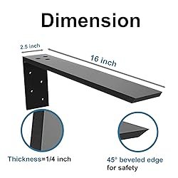 Countertop Support Bracket with Heavy Loading Capacity. Our countertop support brackets are made of premium iron that can hold heavy weight well. The countertop metal brackets can hold about 600-800lb per pair. Combine the simple shape L brackets and some wood shelf, you can make most use of you wall space and store more items. It is an easy and affordable way for countertop support. Size and Dimension: the size of our countertop support bracket 16" x 6" x 2 1/2". It fit the countertop with overhangs between 16"~20". The heavy duty L bracket is suitable for quartz, granite, wood, concrete and laminate countertops. It’s an economical way to protect your countertop investment. The end of the brackets is specially designed a 45° angle beveled edge and protect users from hurting. Wide Usage of Countertop L Brackets in Daily Life. The countertop support brackets have simple L pattern and a frosted black coating, creating a rustic look and very decorative for any space. The countertop shelf brackets goes perfectly in a rustic or industrial home decor scheme. The brackets is perfect for quartz, granite, wood, concrete and laminate countertops. 2 Packs of Countertop Metal Brackets in the Package. Our metal countertop shelf brackets include 2 packs of 16 inch L brackets and all hardware. The L bracket size is 16”x6”x2.5” with the thickness of 0.4”(10mm). We also include bolt screws in our package to hold heavy weight. All our wall brackets are packed in an individual bags to prevent any scratch during transportation. Premium Customer Support-We not only supply products of good quality, but also offer pleasant shopping experience for every customer. You could apply refund or replacement if you are not happy with our products. You could contact us for any help. We will all stand behind our product and provide top level customer support. Just have a try and you will not regret your choice!