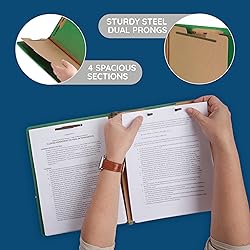 - Heavy Duty Classification Folders designed for repeated use We understand in an office environment you need durable folders that can take years of abuse in a busy office, so we designed a product that can do just that. Heavy duty 25pt green pressboard and 17pt kraft paper dividers Tear-resistant 2 inch Tyvek expansion for those extra bulky files Durable metal prong fasteners that are built to last Color coding your files made easy Easily identifiable, our green classification folders are the perfect addition to any color coded filing system, and as a bonus, they help brighten up any office environment.