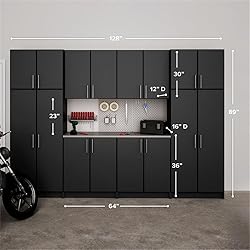 Prepac Elite Functional 8-Piece Garage Cabinets and Storage System Set G, Simplistic Garage Shop Cabinets 16" D x 128" W x 89" H, Black, BRSX-1016-8M