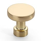 - Amerdeco 10 Pack Brushed Brass Kitchen Cabinet Knobs Single Hole Cabinet Pulls Round Gold Drawer Knobs Dresser Knob for Bathroom Cabinets
