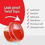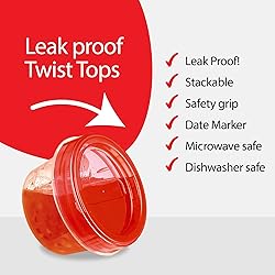 High quality and durable construction. Food storage containers made with high quality, food grade and BPA free PP Red plastic are leakproof, microwave safe, no crack and mess free. Twist on lids give storage containers a tight secure seal. Leak proof, strong, and durable construction. Meal prepping and lunch prep is now easy and convenient with freezer storage containers for your busy lifestyle. Perfect for healthy meal prep, food preparation, storing leftovers, and taking lunch on the go. Freezer safe, leakproof, and microwave safe food containers for food and meal prep, freezing and storing food, storing food, and school lunch. Tight seal lid and thick plastic ensure your food stays fresh and freezer burn free. Microwavable containers go from freezer to microwave for your convenience, remove lid before microwaving. Reusable containers for food are durable, washable, washable, odor resistant, stackable, and long lasting. Great containers for soups and meals, food, school lunches, purees, homemade drinks, sauces, dressings, full meals, sides, salads, puddings. Multi pack 6 sets of 4 oz food containers and covers. For at home or commercial use. Great for packing up food at your deli, food kiosk, food truck, restaurant, take out, and more. Use for freezing food at home, food storage, packing lunches for work or school. Also great for kitchen storage and organization or home organizing containers.