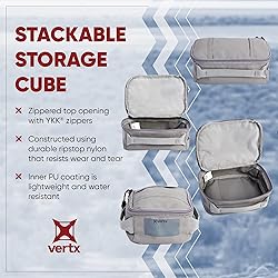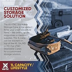 - The Vertx VTAC Stackable Storage Collection \n Made in collaboration with the Kyle Lamb of Viking Tactics, the VTAC stackable cubes for storage offer the perfect storage solution for the road. Allows you to carry your items like ammo, spare magazines, or medical supplies where you need them the most. \n The ideal tactical gear bags and medical storage containers, designed to blend into outdoor settings. Gives you rapid access and keeps essential tactical accessories close at hand. \n Features: Constructed using durable ripstop nylon that resists wear and tear. Poly-carbonate exterior coating is water and stain-resistant. Inner PU coating is lightweight and water resistant. Pockets are constructed using tear-resistant honeycomb mesh. Low-profile interlocking tab system to hold cubes together. Zippered top opening with lockable YKK zippers. Loop is compatible with Tactigami or any other hook-and-loop accessory. Can be pressed flat for easy storage when not in use. Top and front side grab handles, Write bar for easy identification of contents. Modular divider can be placed in any position. \n XS: 1L Capacity. 7.87" L, 5.51" W, 3.15" H. Can be stacked on top of the XS, SM, MD, or MD Flat VTAC Stackable Cubes \n SM: 5L Capacity. 7.87" L, 5.51" W, 7.87" H. Can be stacked on top of the XS, SM, MD, or MD Flat Stackable Cubes. \n MD Flat: 5L Capacity. 11.42" L, 8.07" W, 3.15" H. Can be stacked on top of the XS, SM, MD, MD Flat, MD Toolpouch, LG, or XL Stackable Cubes. \n MD: 11L Capacity. 11.41" L, 8.07" W, 7.87" H. Can be stacked on or under the XS, SM, MD, MD Flat, MD Toolpouch, LG, or XL Stackable Cubes. \n LG: 25.5L Capacity: 16.93" L, 11.81" W, 7.87" H. Can be stacked on or under the MD, MD Flat, MD Tool Pouch, LG, or XL Stackable Cubes. \n XL: 60L Capacity. 16.93" L, 11.81" W, 15.75" H. Can be stacked under the MD, MD Flat, MD Toolpouch, LG, or XL Stackable Cubes.