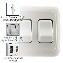 - It can feel pretty annoying to have a ton of different switches located all throughout your RV or camper for every accessory or appliance you have. If you want to make your RV life a little easier, use this 4 switch panel! Adds Convenience The biggest advantage of a 4 switch panel such as this one is that it allows you to take some of the many switches in your rig for various accessories, appliances, and operations and condense them into one space. You could flip on a series of lights, control your heater or air conditioning, and much more from one location. Great Features There are many great things to enjoy about this 4 switch panel. It features 4 4 SPST (Single Pole Single Throw) switches ¼” alongside blade terminal hookups, which make it easy to install. It is ideal for use with vents, lights, fans, and much more. Its rigid plastic construction gives it superb durability, with its rounded edges giving it a smooth and pleasing appearance. This unit is made in the USA and can be used in 125v or 250v AC systems at 16amps. Do not clean using ammonia or other harsh cleaning chemicals.