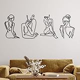 Photect 4 Pieces Metal Wall Art Decor Black Single Line Art Drawing Minimalist Abstract Female Woman Wall Sculptures Hanging Decor Accents for Bathroom Living Room(Classic)