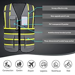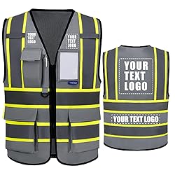 ✅ [Customized] One high-visibility reflective safety vest can be customized, with your own design image or company logo imprint. This safety vest will ensure that you and your company are easily noticed and recognized. Surprise: If you purchase 10 or more high-visibility personalized printed safety vests at one time, we will give priority service. ✅【High Visibility】HIGH VISIBILITY AND 360° REFLECTIVITY: Neon safety vest is high visibility with two-inch wide reflective strips along the waist, chest, shoulders and back which provide 360°protection to makes you stand out from dark and picked up easily by a car's headlights whether you run or work at any poor light,and easy to find and take measures in advance. ✅【Pockets】Zipper front closure and 7 pockets were reinforced with tight sewing, with two durable mic tabs on the shoulder to hold your radio/walkies. grey webbing, sturdy, wear resistant. It comes with a pocket window to keep your ID badge. A D-Ring. A pouch for flashlight/pen/pencil. A small but expandable hook and loop flap closure pocket. And 2 Large expandable snap-button utility pockets with two side hand-insert pockets underneath. A bright HI VIS safety vest with pockets. ✅【CAUTIONS】High visibility safety vests There are yellow, orange, pink, blue, purple, green, white, black, red and navy blue. You can choose the color you like. Different colors can also distinguish different departments or positions.MATERIALS: 100% polyester high visibility reflective material, lightweight and breathable, washable and durable. ✅APPLICATIONS: Great for municipal workers, contractors, superintendents, engineers, surveyors, foresters and conservation workers, airport ground crews, fulfillment/warehouse workers, public safety marshal, crossing guard, delivery crews, traffic and parking attendants, securities, public transportation, and truck drivers, survey crews, and volunteers. It is also suitable for recreational activities such as cycling, wilderness hiking, park walking, jogging, and motorcycling.