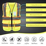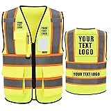 ✅ [Customized] One high-visibility reflective safety vest can be customized, with your own design image or company logo imprint. This safety vest will ensure that you and your company are easily noticed and recognized. Surprise: If you purchase 10 or more high-visibility personalized printed safety vests at one time, we will give priority service. ✅【High Visibility】HIGH VISIBILITY AND 360° REFLECTIVITY: Neon safety vest is high visibility with two-inch wide reflective strips along the waist, chest, shoulders and back which provide 360°protection to makes you stand out from dark and picked up easily by a car's headlights whether you run or work at any poor light,and easy to find and take measures in advance. ✅【Pockets】Zipper front closure and 7 pockets were reinforced with tight sewing, with two durable mic tabs on the shoulder to hold your radio/walkies. grey webbing, sturdy, wear resistant. It comes with a pocket window to keep your ID badge. A D-Ring. A pouch for flashlight/pen/pencil. A small but expandable hook and loop flap closure pocket. And 2 Large expandable snap-button utility pockets with two side hand-insert pockets underneath. A bright HI VIS safety vest with pockets. ✅【CAUTIONS】High visibility safety vests There are yellow, orange, pink, blue, purple, green, white, black, red and navy blue. You can choose the color you like. Different colors can also distinguish different departments or positions.MATERIALS: 100% polyester high visibility reflective material, lightweight and breathable, washable and durable. ✅APPLICATIONS: Great for municipal workers, contractors, superintendents, engineers, surveyors, foresters and conservation workers, airport ground crews, fulfillment/warehouse workers, public safety marshal, crossing guard, delivery crews, traffic and parking attendants, securities, public transportation, and truck drivers, survey crews, and volunteers. It is also suitable for recreational activities such as cycling, wilderness hiking, park walking, jogging, and motorcycling.