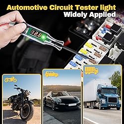 VERSATILE TESTING COVERAGE: The test light covers a wide voltage range of 3V-48V and is suitable for various vehicle types, including cars, RVs, and trucks. The electrical tester is designed to diagnose electrical issues across vehicle systems, from battery voltage to lighting and fuse connections CONVENIENT AND EFFICIENT TESTING: The car fuse tester 87-inch spring cable provides a wider reach and ease of use, allowing easy access to tight spaces under the hood, simplifying issue detection, boosting work efficiency, and reducing diagnostic costs ALL-ROUND VEHICLE DIAGNOSTICS: The circuit tester automotive rapidly identifies issues in lighting systems, including headlights, taillights, and turn signals, with clear LED polarity indicators that make it easy to spot faulty sockets and fuse connections LONG-LASTING DURABILITY TOOL: Crafted from ABS material, our 12v test light is built for frequent use, with elasticity and flexibility that ensure reliable performance in testing environments, making test light automotive a cost-effective diagnostic tool for automotive technicians and individuals AFFORDABLE TESTING TOOL: The probador de corriente automotriz offers comprehensive diagnostics at an affordable price, with an automatic bi-directional electric circuit tester that clearly identifies polarity (red for positive, green for negative), making it ideal for low-cost testing