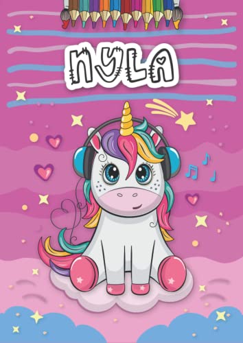 Nyla: Personalized Coloring Book for Nyla | Theme: Unicorn | Birthday gift for girl, daughter ... | Ages: 4-8 | 25 unicorn designs with name Nyla, Large size A4 (ca. 8.5 x 11 inches)