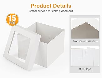 - Kootek 15pcs Cake Boxes10x10x8 Inches Tall Cake Box with WindowWhite Bakery BoxesCake Box for Multi-Layer Cakes, Cookies, Pie, Pastries