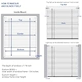 Vinyl Inside Mount ONLY. For better internal installation, blinds width will 2/5" narrower. Actual Blinds Size is 21 3/5" W x 36" H, the unique spring rod can extend 1 inch in total, allow the blind to fit for window width 21.7-22.6 inch, blind height can adjust from 0" to 36". (Pls Note) Minimum 1 1/5" depth of window frame required for inside mount. No Drill Blinds: LazBlinds patented technology No Tools-No Drill system allow it no need to drill any holes on your window frame, perfect for Renter, Landlord, and Home Buyer. Easy to Install in 30 seconds. Cordless Blinds for Windows: Simply hold the bottom rail to lift or lower the blind down. No more exposed dangling cords. Providing a more modern and cleaner appearance to every room and a safe environment for home with pets and kids. Light Filtering: Switch between light filtering or room darkening by using the twisting wand. The tilt wand makes slats 180 degree turning to control light, block UV rays and provide privacy. Perfect for living room, family room, bedroom, bathroom. Fit All Kinds of Walls, like woodiness metope, tile marble, concrete wall and rough tile. Won’t Fall Off: The Metal Top Rail can afford maximum 30kg, absolutely safe to use.