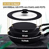 Ydeapi 2 Pack Universal Lids - Silicone Lids For Pots and Pans, Fits 7.5" 8.5" 9.5" & 10" 11" 12 inch Diameter Cookware, Tempered Glass with Heat Resistant Silicone Rim, Dishwasher Safe