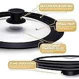 【Food Grade Silicone】Ydeapi pot lid is made of premium tempered glass and food grade silicone. Safer, stronger than normal glass and no metal rusting. The silicone outer ring and anti-slip knob are heat-resistant up to 450°F. 【universal lid】Ydeapi 2 pack universal lid is specially designed to perfectly fit most pots and pans with diameter 7.5", 8.5 & 9.5 inch to 10" 11" & 12 inch A must-have cookware in your kitchen. Just use two lid to cover your pots, pans, skillets, fry pans, saucepans, stock pots and woks, so you can keep your kitchen tidy and no longer cluttered. 【Easy To View & Steam Vent Design】The transparent glass allows you to directly monitor the cooking progress without removing the skillet lid. The steam vent hole is designed to release excess moisture and pressure and prevent spillover, while minimizing loss of moisture. 【Dishwasher Safe & Easy To Store】Save your time to clean the pan lid by placing it in the dishwasher. Also easy to clean by rinse the frying pan lid under running water. The flat design of lid saves more storage space. 【Satisfaction Guarantee】A warranty that lasts forever. For any reason, if you are not satisfied with our products, please let us know and we will replace them freely or refund you full order payment. Get Ydeapi multi-functional lid now! We will do our best to make you happy and satisfied with our products and service.