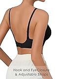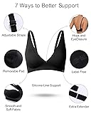 【Ultra Comfort and Seamless Fit】Silky soft material feels smooth and natural against the skin. 3D laser cut on fabric makes this bra invisible under the clothes 【WireFree & Silicone Line Support】The new technique of silicone lines make this bra soft without sacrificing comfortable support, assuming the function of underwiring 【Adjustable Straps & Hook and EyeClosure】The smooth adjustable straps is easy to adjust the bra to perfect position. Hook and EyeClosure ensures secure fit for this bra easy to unhook 【V neck & Removal Pads】Deep V neck bra provide natural shape, comfortable and breathable. Removal pads is able to remove in hot weather and multifunction use 【Suitable for any occasions】This seamless V neck bra is perfect for daily wear, work and sleep wear. Customer Satisfcation Guaranteed: 30 days money back guaranteed