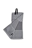 100% Microfiber Imported Multi-textured for all cleaning needs Quick snap attachment 16" x 21" Features a convenient hanging loop Logo in corner with a quick snap attachment Microfibre allows for excellent absorbency with less weight, perfect for your next round Offers great absorbency in a compact design that hangs perfectly on any bag Machine Wash Imported