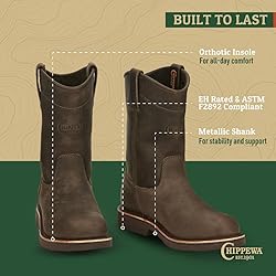 Rugged Craftsmanship: The Chippewa Classic 2.0 Pull-On Work Boot is renowned for its authentic and dependable design. Built for the toughest conditions, these boots cater to professionals seeking durable leather boots for men Superior Durability: Constructed with a premium leather upper, these work boots for men withstand countless adventures. They are ideal for construction and outdoor environments where durability is essential for demanding tasks Slip-Resistant Traction: Equipped with a slip-resistant Vibram rubber outsole, these Chippewa men's pull-on work boots provide excellent grip on wet and dry surfaces. This feature enhances safety and stability in challenging work conditions Comfort and Support: A cushioned orthotic insole ensures comfort, reducing foot fatigue during long shifts. These men's leather pull on boots ensure a reliable fit, suitable for those requiring dependable footwear Efficient Wear: Practical pull tabs allow for quick and hassle-free wear, making these boots perfect for professionals. The pull-on workboot design is tailored for those who need durable and efficient Chippewa pull on work boots