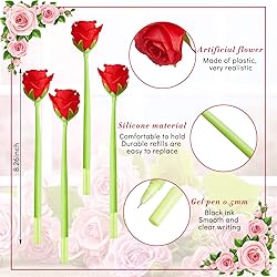 Ample Pens for Valentine's Day: we have prepared a total of 24 pieces of valentines day pens for you in the package; The abundant quantity can satisfy your use and replacement requirements in daily life and on Valentine's Day, and you can also share them with your friends and family Make Your Desk Fresh: there is a faux flower on the top of each pen, which is lifelike, full of life, charming and elegant; You can use these red rose pens to decorate your desk and shelves, creating a sweet atmosphere and bringing endless fun Material You Can Believe: made of plastic and silicone material, our flower ink pens are sturdy and reliable, not prone to deforming or breaking, designed in bright and vivid colors, hard to fade, comfortable to hold, providing you with a service for a long time Ideal Gift for the One You Love: this floral pens for women set is a special and stylish gift that expresses your lasting love for the special person in your life; Most women like a bunch of beautiful flowers, and this bunch can be kept for a long time, making your love last forever Widely Applicable: these writing pens with flowers can come in handy whether you're writing journals, budgets, taking notes during small group or meeting sessions, or jotting down daily reminders and schedules; they can be applied on a variety of occasions, including office, hotel, restaurant, Valentine's Day party, bridal shower, garden party and so on