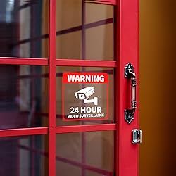 - Features: - Durable to use - Premium vinyl - Easy to read - Waterproof - Removable - Scratch resistant - Strong adhesionContent:24 Hour Video Surveillance Size: 6” x 6” Inch Packing: 5 Pack Designed for: Home, House, Office, Business, Vehicles, Yard, Store, Market
