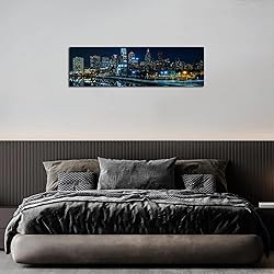 【Blue Philadelphia Skyline Wall Art Size】: The office merchandise, teal Philadelphia city USA night scene pictures print, 14"X48" perfect size office wall decor,unique affordable gift.Modern Philadelphia building pictures for bedroom, city landscape themed room decor is suitable for gray, yellow, blue, brown, silver, gold, or bohemian style walls. Applicable place:Bedroom wall decor, kitchen wall decor, wall decorations for living room. American Philadelphia city wall art decoration paintings. 【USA Philadelphia City Wall Art】: Using high quality environmental protection ink printed on high definition giclee canvas which is waterproof, UV resistant, not easy to fade. Large canvas art modern city pattern was carefully selected and designed by sunfrower artists. It creates outstanding appearance and visual enjoyment. Philadelphia wall picture brings our heart to the beautiful scenery of every city, Perfectly matched to every traveler's home wall decoration. 【Philadelphia Wall Art Home Decoration Easy to Hang】- Rustic blue city wall art wooden stretched and framed art, wood bars are strong and durable, not easy to deform. Hooks on the back of frame in addition, also provide wall nails to easy ready to hang. Our product is packed in cartons with clear plastic to avoid breakage. 【Philadelphia Wall Decor for Living Room】: The perfect apartment wall decor for any room you want to brighten up such as living area, boys or girls bedroom, kitchen, dining room, bathroom, hallway, guest room, sitting room, office, cave, hotel, cafe, restaurant, bar, guesthouse, KTV, Gym and so on, sea view room or villa room, perfectly match any space. the office merchandise, teal philadelphia city usa night scene pictures print, 14"X48" perfect size office wall decor,unique affordable gift. 【Philadelphia Wall Art Bedroom Wall Decor Above Bed】: Unique gift, chic inexpensive gifts for women, men, kids, teens, boys, girls, wife, girlfriend, her, husband, boyfriend, him, baby, nursery. wedding and bridal shower, birthday, Halloween, anniversary, valentines day, mothers day, fathers day, graduation, baby shower, black history month, 4th of July, veterans and memorial day, martin Luther king day, housewarming gifts. 1,7,15 year anniversary gifts for men ; 10 year anniversary gifts for couple.