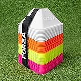 - FORZA MINI TRIANGLE TRAINING CONES SPECIFICATIONS:DIMENSIONS:Cone Size: 13cm L x 11.5 W x 4.5cm H | 5in L x 4.5in W x 2in HCone Weight: 12g | 0.4 oz.MATERIALS:Cones are made from durable polyethyleneMISCELLANEOUS:Available in multi-coloursSold as a pack of 40Supplied with a strap which keeps the cones together for portability & storage