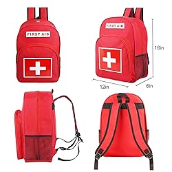 【Professional Emergency Backpack 】Medium size provides ample storage space for medical supplies and survival equipment. Bright red color with reflective and medical logo ensures easy identification in case of emergency. 【Premium Material 】Made of durable waterproof and tear-resistant oxford fabric, it provides good protection for your first aid kit, lightweight two-way zipper, adjustable buckle strap, and padded shoulder strap for your comfort. 【Large Capacity】This large FIRST AID backpack has an opening that measures 16*12*6 inches, and it has a large main compartment that can hold many first aid items. Weighing only 1 lb, it is lightweight and comfortable to carry! 【Multipurpose】The emergency backpack is ideal for first responders, paramedics, outdoor trips, hiking, camping and sporting events. Suitable for home, school, office or car, this first aid backpack is a must-have for emergency situations. 【Ideal Gift Choice】 E-HORDE empty first aid bag is stylish, functional and versatile. Show your family, friends and company a healthy care with this comprehensive first aid kit backpack!