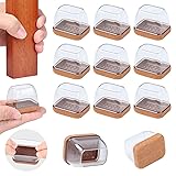 Ezprotekt 16 Pcs Rectangle Clear Silicone Chair Leg Floor Protectors with Felt, Rectangle Felt Furniture Leg Caps, Table Leg Covers Cups, Anti- Scratches and No Noise (Fit L :1.3-1.7", W: 0.9-1.2")