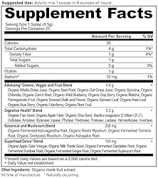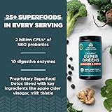 You will receive (1) tub of Organic SuperGreens Detox & Alkalize Powder, 25 servings with 1 gram of sugar per serving and 0 grams added sugar SUPERFOOD FORMULATION: Supports healthy digestive function, detoxification, healthy energy, reduces occasional gas & bloating, and helps maintain healthy gut microflora. This mixable powder is full of nutrients sourced directly from premium superfoods like spirulina, alfalfa and oat grass juice for healthy detoxification. On top of the greens and botanicals in this blend, you’ll get the clinically studied probiotic Bacillus coagulans to help support a healthy gut. GREAT TASTING: Get the benefits of juicing every day without the hassle. This greens powder is packed with 25+ greens, fruits and herbs (plus probiotics) and features a proprietary organic Superfood Detox Blend that includes alkalizing superfoods like apple cider vinegar, milk thistle and spirulina plus a probiotic to help you digest and detox. Add one scoop to water, juice or your favorite smoothie recipe to easily up your daily greens. Our formulas are informed by ancient wisdom and backed by modern science; We use clinically-studied ingredients, backed by research and tested by accredited 3rd party labs for efficacy, GMP Certified for safety and all products are made in the U.S.A.