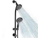 Egretshower Handheld Showerhead & Rain Shower Combo for Easy Reach, 27.5" Drill-free Stainless Steel Slide Bar, 5”of 5-setting Handheld Shower and Showerhead, with 5ft Hose - Black