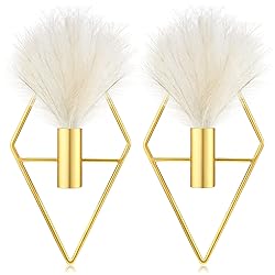 - Features: Cheer up your party: With a gold color and stylish appearance, you can show our gold hanging pampas diamond shape in Christmas, New Year, Valentine's Day and so on, to add more joy and elegance. Considerate and practical gift: Our geometric wall decor with artificial plants is considerate for giving to your family, friends, relatives, classmates and colleagues as holiday gifts and housewarming gifts, to show you care. Specifications: Main material: metal material, with coating and black ceramic Main color: gold Size: Metal wall vases: about 10 x 5 inches/ 25 x 12.5 cm Inner tube: about 2.4 x 1 inches/ 6 x 2.5 cm Package includes: 2 x Metal wall vases 2 x Artificial plants Notes: Manual measurement, please allow slight errors on size. The color may exist a slight difference due to different screen displays.