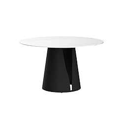 - Sdorens Modern Round Dining Table, Sintered Stone Tabletop with Solid Carbon Steel Base, Kitchen Dining Room Table for 6-8Specifications:Product Name: Round Dining TablePieces Included:1 TableStyle: Modern / GlamUsage: Living Room, Dining Room, Hotel, Restaurant, Offic ConferenceDimensions: 53"L x 53"W x 29.5"H / 59"L x 59"W x 29.5"HColor: White/BlackTable Material: Sintered stone + Stainless steelWeight Capacity: 300 lbsAssembly Required:YesAdditional Tools Required: All tools includedAssembly Required: 15 MinutesHeight Adjustable: Non-Adjustable HeightNumber of Package: 2Notice:1、Manual measurement has been used, there may be some reasonable error.2、Items may slightly differ from photo in terms of color due to the lighting or your monitor’s display3、Natural materials will vary subtly in color tone, surface texture, and veining. Natural variations are not considered product defects. (Normal use is not affected.)