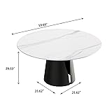 Sdorens 59" Modern Round Dining Table, White Sintered Stone Tabletop with Solid Carbon Steel Base, Kitchen Dining Room Table for 8