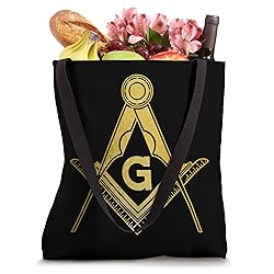 Masonic Freemasonry Items design. This cool vintage mason and masonic design for men with Masonic square and compass symbol is the perfect gift for carpenters. 16” x 16” bag with two 14” long and 1” wide black cotton webbing strap handles. Made of a lightweight, spun polyester canvas-like fabric. All seams and stress points are double-stitched for durability, and the reinforced bottom flattens to fit more items and hold larger objects. Spot clean/dry clean only.