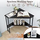Durable & Stable Construction: Made of premium engineered wood board and rustproof steel pipes, this corner writing desk boasts good durability and stability. Especially the triangle design ensures stability and load capacity. Plus, the adjustable foot pads keep the corner table balanced on uneven floor and avoid floor scratches. Convenient Charging Station: This corner computer desk is upgraded with a built-in charging station on the tabletop, which is designed for better working and gaming experience. The integrated power socket has 2 power outlets & 2 USB ports, making it easy to charge your laptop, tablet, power bank or smartphone. Space-saving Triangle Desk: This small corner table has a compact, triangular design, which makes full use of your space and perfectly fits against the wall. This corner table is a great solution for small space. Come with detailed instruction and hardware in the package, it is easy to assemble the table in a short time. Enough Working Area & Storage Shelf: The spacious tabletop keeps your laptop, books, clock, or decorations organized and within arm’s reach. It provides a perfect workstation for writing, studying, and other activities. In addition, the open shelving under the desk is a perfect storage place for small items and helps free up more space on the desk. Industrial Design & Widely Use: Combining sophisticated wood accents and a sleek black frame, this corner desk gives your home a charming, modern workplace. This small corner table can be widely used as a computer desk, writing table, study table, vanity desk and more. It is perfect for your living room, bedroom, study or dorm.