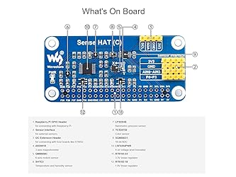 Standard Raspberry Pi 40PIN GPIO extension header, supports Raspberry Pi series boards Onboard QMI8658C+AK09918 (3-axis accelerometer, 3-axis gyroscope, and 3-axis magnetometer), detects movement, orientation, and magnetic.Onboard SHTC3 digital temperature and humidity sensor, allows monitoring the environment Onboard LPS22HB barometric pressure sensor, allows monitoring the environment.Onboard TCS34725 color sensor, identifies the color of nearby object Onboard SGM58031, 4-ch 16-bit precision ADC, AD expansion to support more external sensors Brings I2C control pins, for connecting other host boards like STM32.Comes with development resources and manual (examples for Raspberry Pi/STM32)