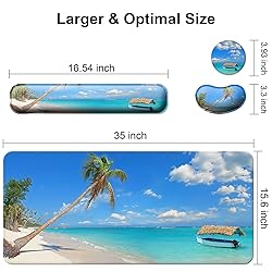 Elegant Looking:We select pretty and delicate patterns ,applied excellent printing technology to ensure color vibrant and saturated. It is perfect to boost your spirits and add some personality to your work place and home,gives you a smile everytime looking at it, it can be a good gift as well. Ergonomic Design: The ergonomic wrist rest is designed with curved shape wrist rest, filled in momory foam, relieve the pain and stiffness to your hand,wrist,elbow,shoulder,eased the tension while typing or playing games.Lycra fabric is smooth and silky,it feels soft against the skin,and allow the mouse to slide easily. Larger and Special: 4 Pieces Set: Keyboard Wrist Rest ( 7.9inch x9.9 inch), Mouse Pad Wrist Rest (3.5 inch x 17.7 inch), Large Mouse Pad (35inch x 15.6inch), Coaster(Diameter 3.95inch) designed with an optimal shape and size, fit for all kinds of mouse / keyboard, compatible with Computer / iMac / Laptop Non-slip Base: The bottom of the keyboard wrist adopts anti-skid rubber material. The bottom of the Mouse Wrist is with Semi-adhesive PU.They can be firmly fixed on the desktop to prevent sliding,also no fear of residue or trouble adjusting. Superb Quality: The keyboard and Wrist Rest and Coaster set is made of soft memory foam and smooth, breathable fabric, supple comfortable and durable touch. It is enviromental-friendly and safe, without unpleasant smell.Edges has been reinforced to prevent deformation and damage to guarantee the long time use.
