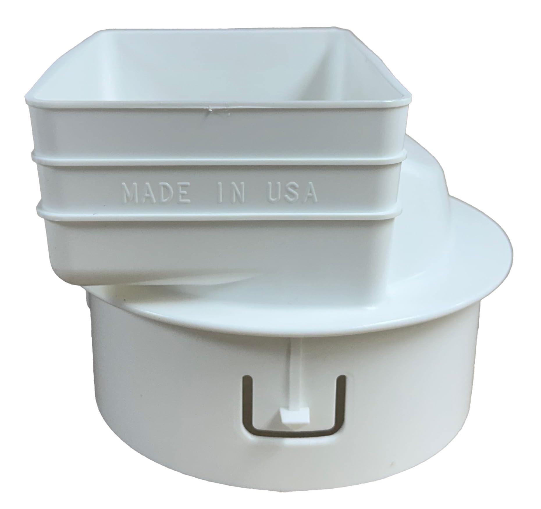 Downspout Tile Adapter for Commercial 6"x6" Downspouts to 6" Drainpipe 6x6 Top opening (inside) 6 1/8" square. Bottom (outside) 5 1/2" round. Made of .040 5052 Aluminum