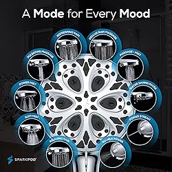 10 SPRAY FUNCTION SHOWER HEAD: SparkPod's Filtered Shower Head offers 10 unique spray settings, including Power Stream & Pulsating Massage. The perfect replacement showerhead for all your moods BUILT-IN POWER JET: Our high pressure shower heads with filter have two ultra powerful top-sprays, making this showerhead perfect for easily cleaning your bathroom POWERFUL FILTER SHOWER HEAD - SparkPod's advanced formula enables you to relax in cleaner water. This shower head filter effectively prevents hair & skin dryness by filtering chlorine & heavy metals 1 MIN INSTALLATION & 7 UNIQUE COLORS: Install in 1 min, no tools or plumbers needed! Our universal filter shower head comes in unique colors including Luxury Polished Chrome, Black Matte & Brushed Nickel EVERYTHING YOU NEED: This detachable shower head includes a 6-ft stainless-steel hose and a durable wall-mount bracket for easy setup. Enjoy a powerful & high pressure handheld shower head with hose, designed for performance and convenience.