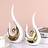 2pcs White and Gold Decor Size: The small size of the unique ceramic abstract figurine decoration is 5.12x1.97x9.06inch, the large size is 5.91x2.17x11.02inch, right sized sculptures for modern home decor..The bottom has a non-slip bottom, which increases friction with the desktop. It can be perfectly integrated with most home décor. So you can place it wherever you like Modern Abstract Art Decor: Abstract art modern statue is a beautiful piece of artwork. It works for your shelves. Nice for office décor. Using this as accent piece for living room. Beautiful and just the right size Modern Ceramic Statue Design: Ceramic abstract art sculpture have a unique flame abstract shape. Very creative. It reflects a bright sheen on the surface when you put it in a place with good light Ideal Gift: Ceramic statue perfect as wedding, anniversary, birthday, housewarming or Mother’s Day gift. A great option for special occasions like Thanksgiving and Christmas White and Gold Home Decor: Abstract art modern statue has a very modern and rich look. The material it's made of is high quality ceramic and it's one of the most beautiful designs and home décor