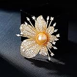 - ✿ Customer Questions & AnswersQ1~ What type of stone is on this flower brooch for ladies?They are clear cubic zirconia, which makes the flower style brooches for ladies more exquisite and shiny. Q2~ What is the cubic zirconia?Cubic zirconia (also known as CZ) is a synthetic gemstone that is similar to a diamond with its brilliance and crystal clarity. As an affordable diamond substitute, it is optically flawless and usually colorless. It also can be made in many different colors. Q3~ Is this imitation pearl brooch pins for women comfortable to wear?Of course. These brooch backs are finely polished that comfortable to wear. ✿ Features: Metal Material: BrassType of stone: Cubic zirconiaType of pearl: Imitation PearlColor: Gold color / Silver color Weight: Approx. 25 g Brooch Size: Approx. 53mm*56mm ✿ Notice Due to manual measurements. There may be some measurement errors. Please refer to the actual item received.✿ Service If you have any questions, please feel free to contact us, we will do our best to resolve problem for you.