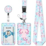 - ID Badge Holder with Lanyard, Cute Retractable Badge Holders Reels , Axolotl Breakaway Lanyards Keychain, Cute ID Card Holders for Women Teacher Nurse Nursing Doctor Student
