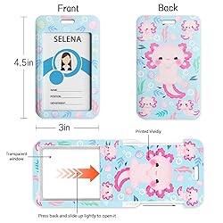 Funny Design: The lanyard for ID badge is designed with cute axolotls arts. This unique lanyard and ID badge holder will make you different, bring a lot of compliments and fun to your life. Cute Card Holder: This cute ID card holder is made of plastic. It is thin and light, easy to carry and use. The clear window is very suitable for displaying or scanning your ID card, work card, credit/debit cards or business cards. Just press the back of the holder and slide lightly, you will open the holder and put cards in. Detachable Lanyard: This breakaway lanyards for keys is made of thick, ultra-soft polyester, comfortably around the neck for all-day wear. The detachable clip adds more safety in case your lanyard stuck in a compromising position. Suitable for keys, phones, ID card holders, car keys, wallets, cameras or other items you need to carry with you. Multiple Application: The badge reel holder set is excellent for nurses, nursing, teachers, students, maintenance, medical and office staff, security staff, custodians, factory workers, cow worker, employees, outdoor enthusiast and etc. Good Gifts: They are colorful and stylish, fit for many outfits. Great Christmas or birthday gifts for mom, wife, daughter, sisters, ants, grandma, kids, colleagues, classmates and other female friends. They are also perfect Valentine's Day gifts for your girlfriend.