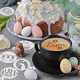 JULBEAR Easter Cookie Stencils, 36Pcs Reusable Eggs Bunny Cookie Coffee Stencils Templates Mold Tools for Cookies Baking Painting Dessert Coffee Decoration Easter Party Supplies