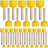 WHAT YOU GET: The package includes a total of 30 pieces of wooden handle round sponge brushes For painting in 4 assorted sizes. 5 pieces 1.5-inch round sponge brushes, 5 pieces 1.15-inch round sponge brushes, 10 pieces 0.75-inch round sponge brushes, and 10 pieces 0.6-inch round sponge brushes. With these four size, you can paint your drawings whatever you want. GOOD QUALITY: Our sponge brushes are made of high-quality sponges which are harmless, and can be reusable. Wash with soap and water after each use. The specially treated foam sponge has good absorption, which can reduce the number of dips or paints. STURDY HANDLES: The wooden handles of our round sponges brushes for painting are made of quality wood, lightweight and durable, providing quality grips for your hands. PERFECT GIFT FOR KIDS: The round sponges brush is the ideal drawing tool for kids, perfect for kids to paint and give full play to their imagination. Suitable for Christmas, Thanksgiving, birthdays, graduations, and other painting needs of children and adults. MULTI-PURPOSE: The round sponge brushes for painting are a practical paint tool for a variety of arts and crafts projects and can be used to decorate living rooms, master bedroom wallpaper, clay miniature and stained or painted windows.